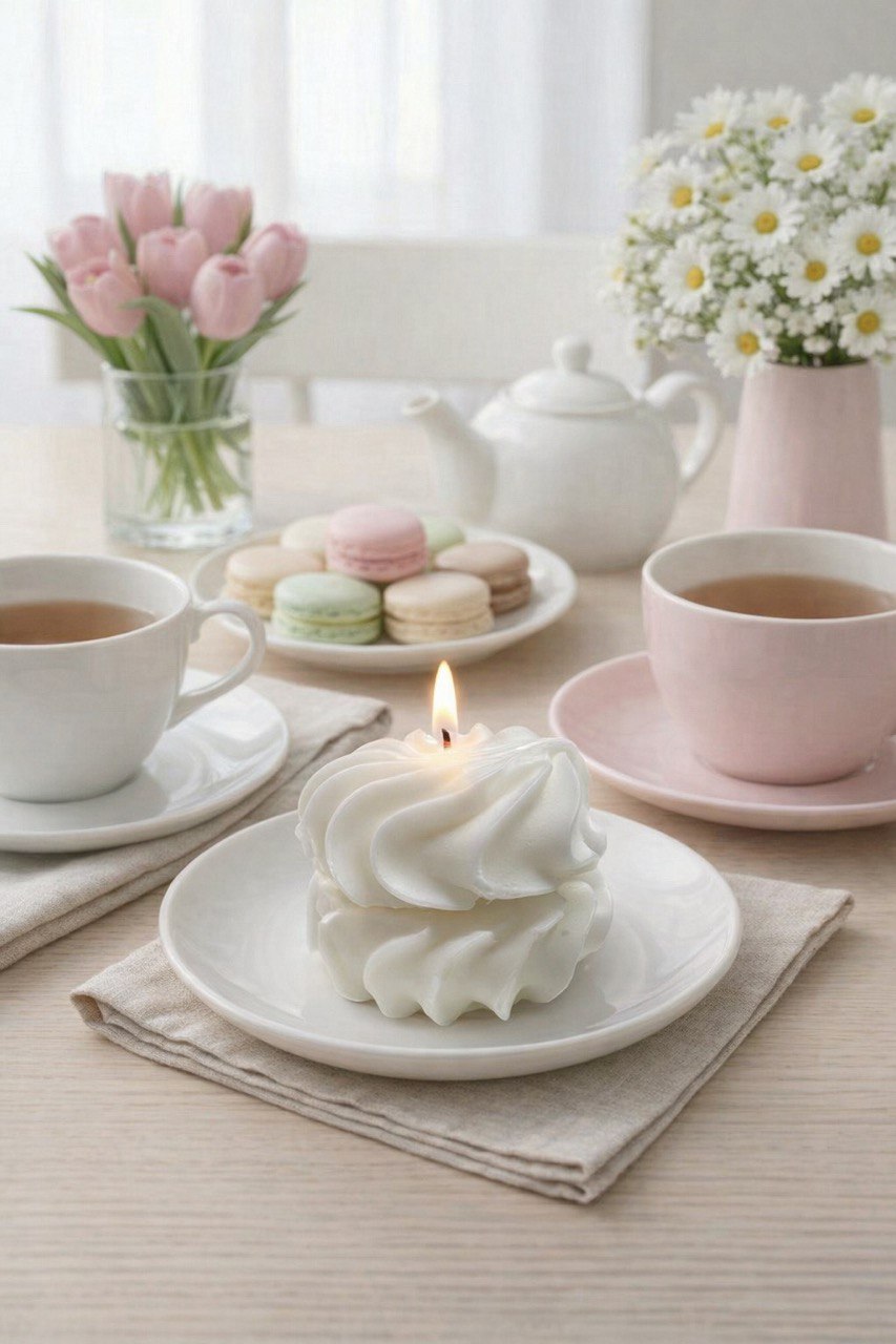 Эти очаровательные свечки в виде зефира станут прекрасным подарком или украшением вашего интерьера.