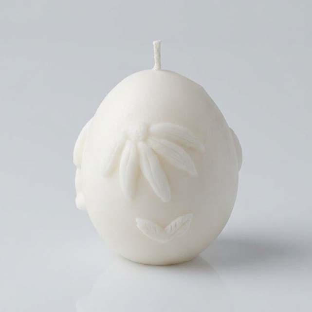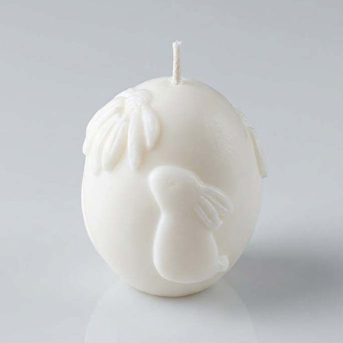 Свеча Яйцо пасхальное белое с декором в виде милого кролика и нежного цветка.