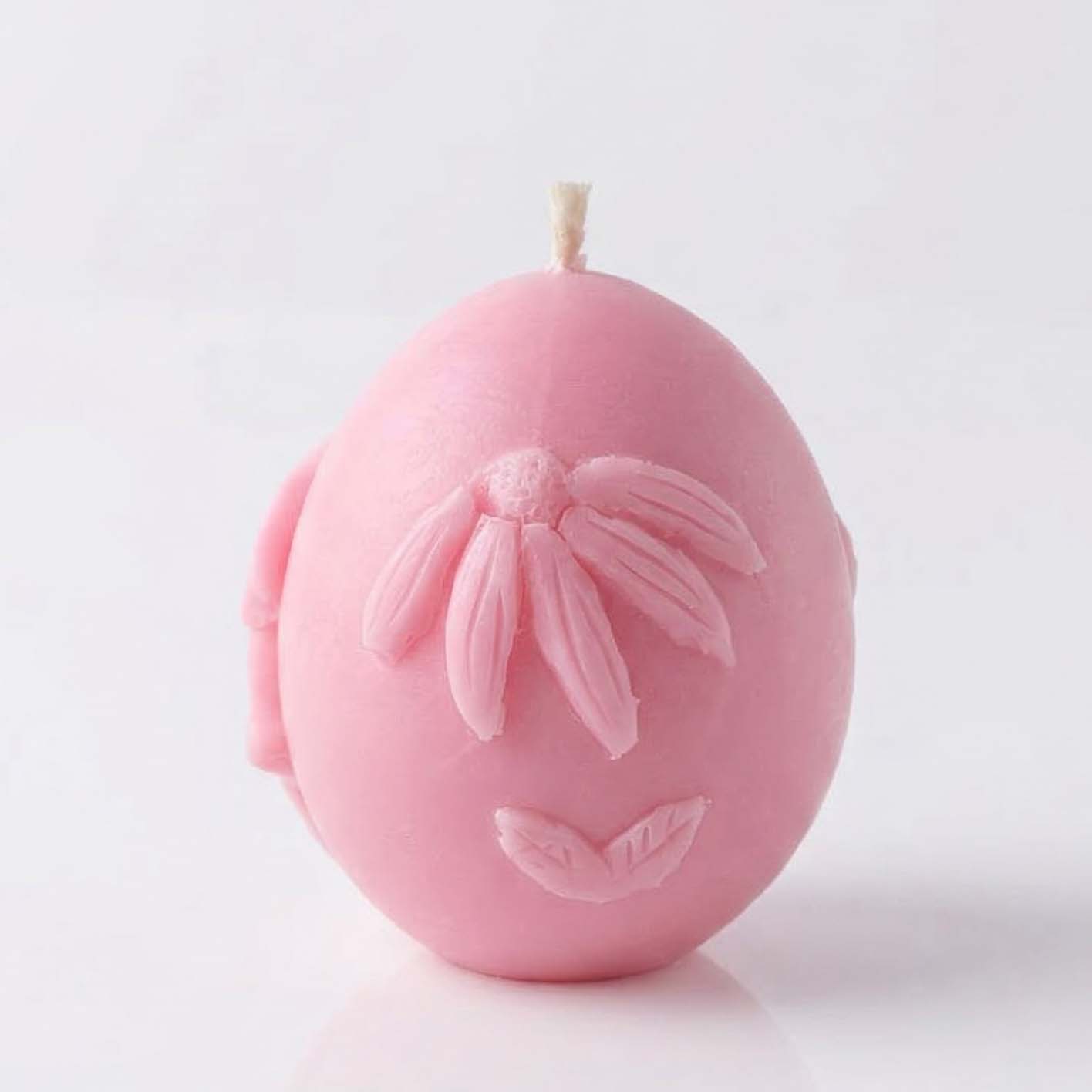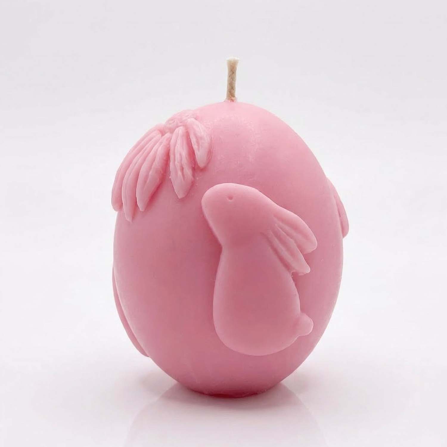 Свеча Яйцо пасхальное белое с декором в виде милого кролика и нежного цветка.