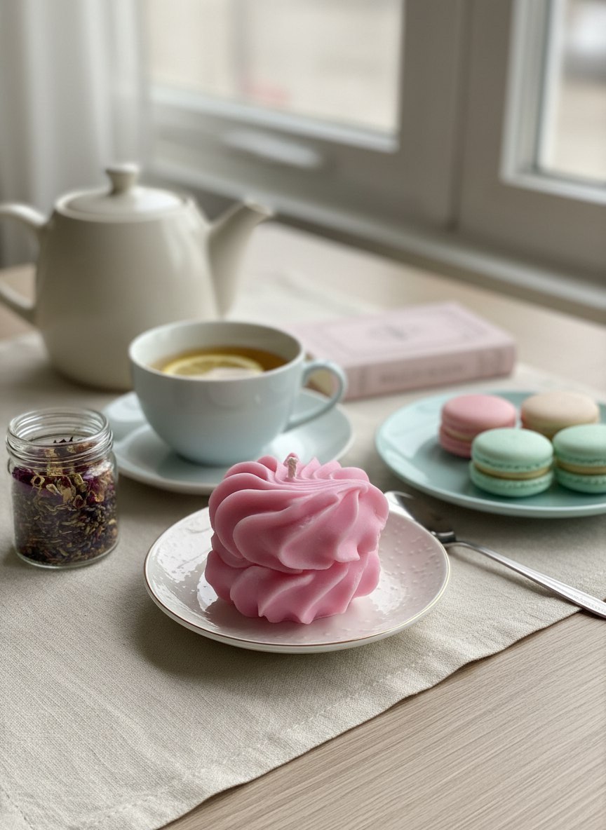 Эта очаровательная свеча в виде зефира станет прекрасным подарком или украшением вашего интерьера.