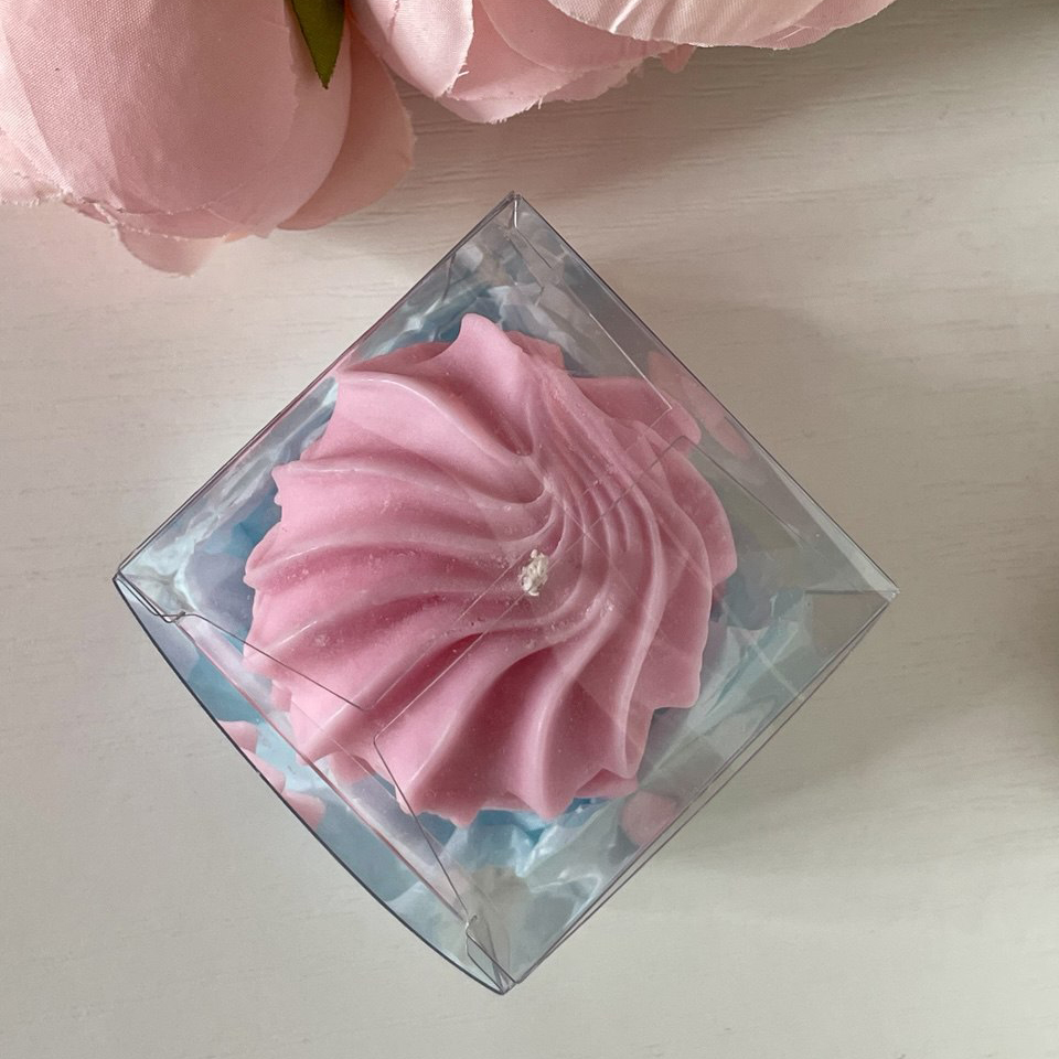 Свеча зефирка клубничная изготовлена из соевого формового воска.